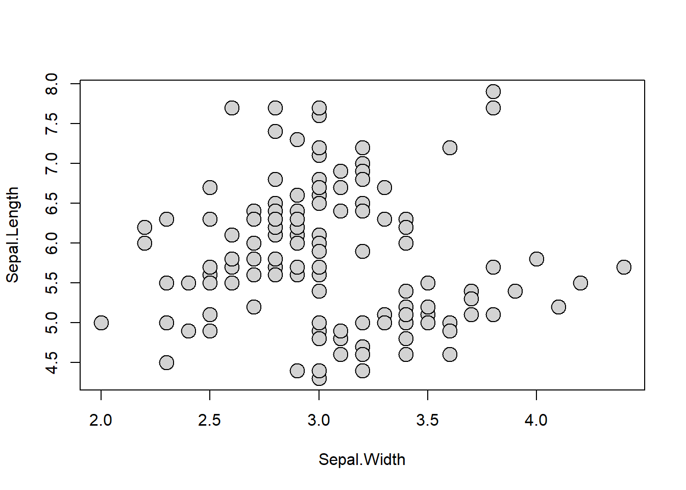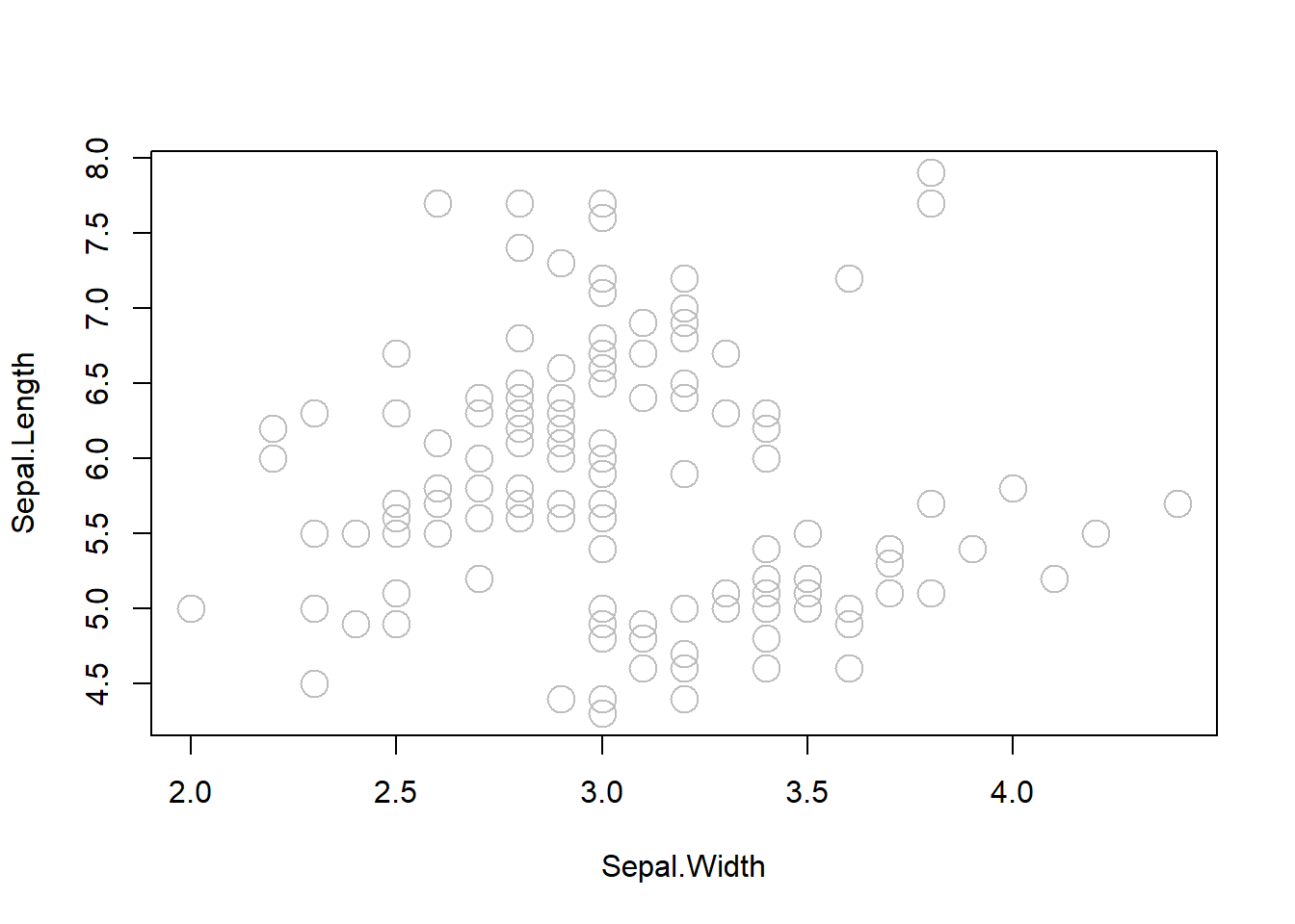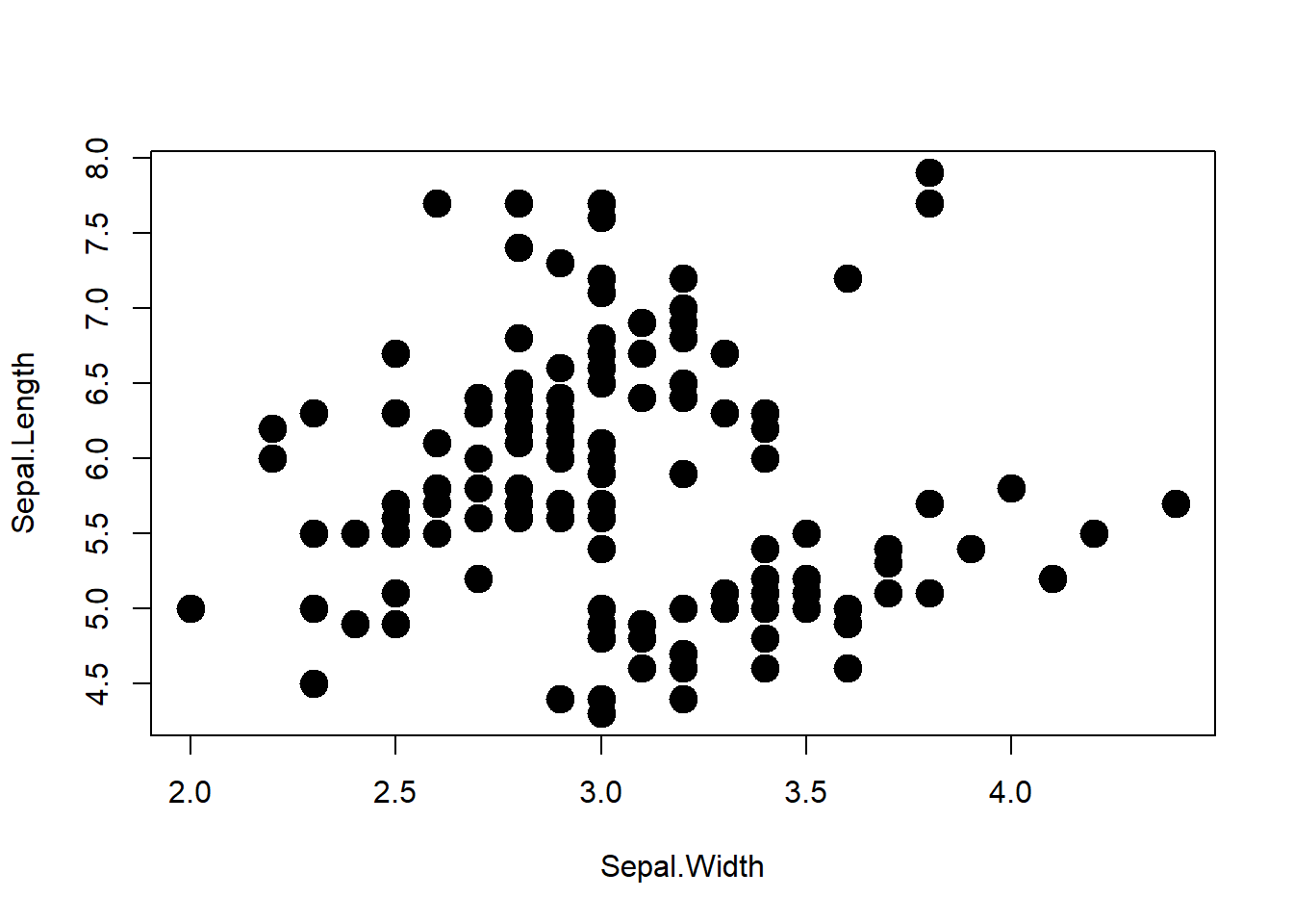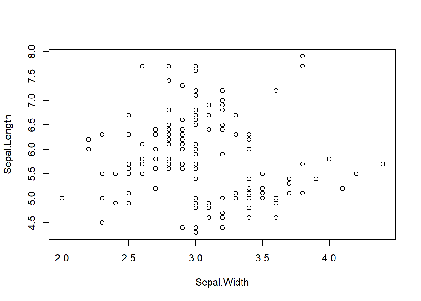 plot(Sepal.Length ~ Sepal.Width, data = iris,
