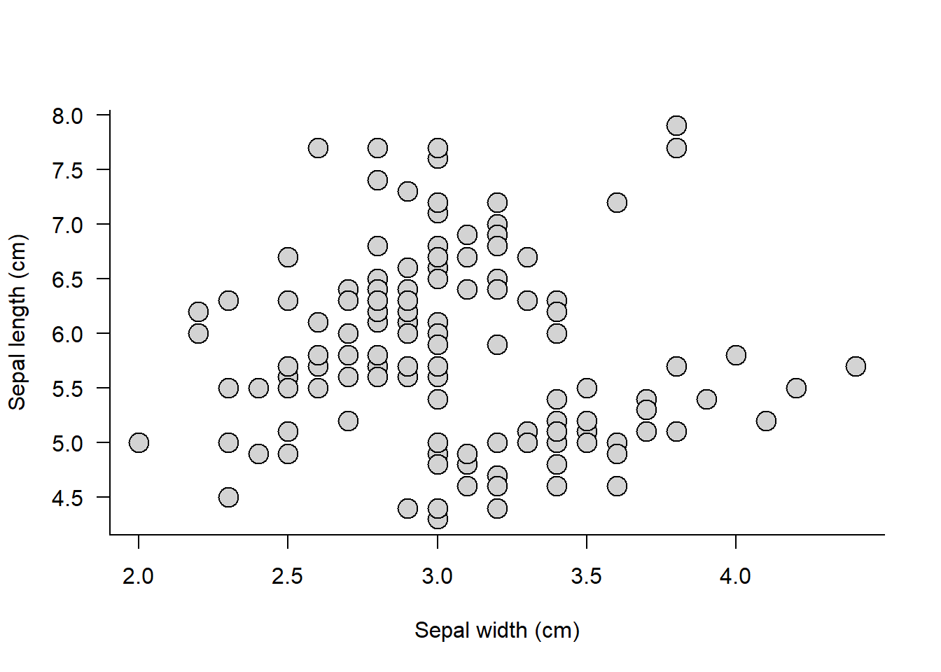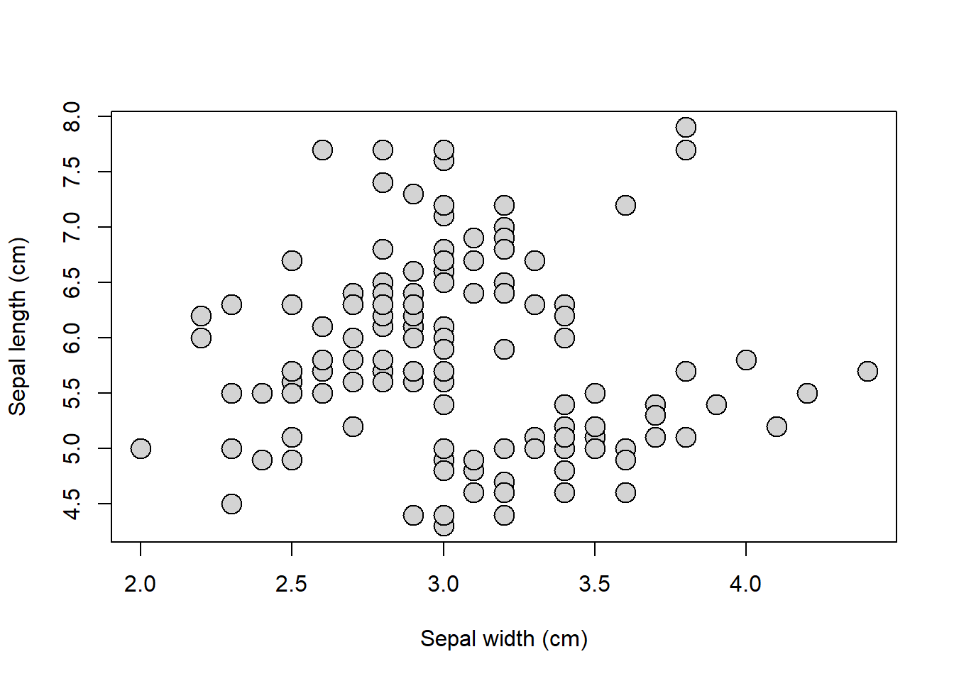 xlab = "Sepal width (cm)", ylab = "Sepal length (cm)")