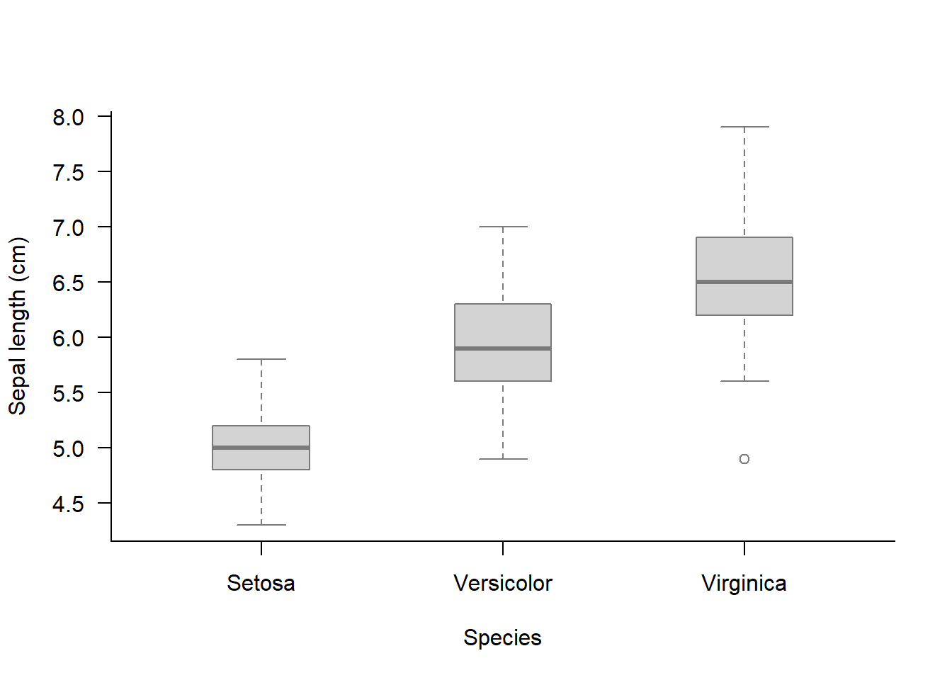 boxplot(Sepal.Length ~ Species, data = iris)